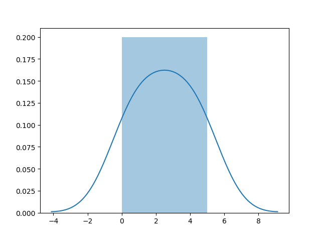 import matplotlib.pyplot as plt import seaborn as sns sns.distplot([0, 1, 2, 3, 4, 5]) plt.show()